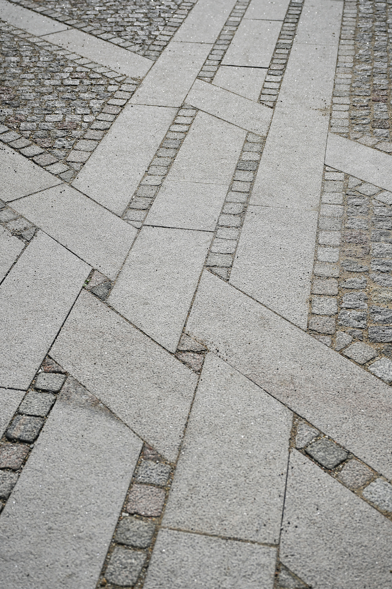 ”Et særligt motiv vi har anvendt, er granitbordurstenenes måde at ”flette” sig sammen på i alle retningsskift og overgange mellem stenformaterne. Dette motiv er hentet fra belægningerne omkring domkirken hvor de ”flettede” sten er en smuk detalje, som vidner om omhu og præcision.” fortæller Marianne.