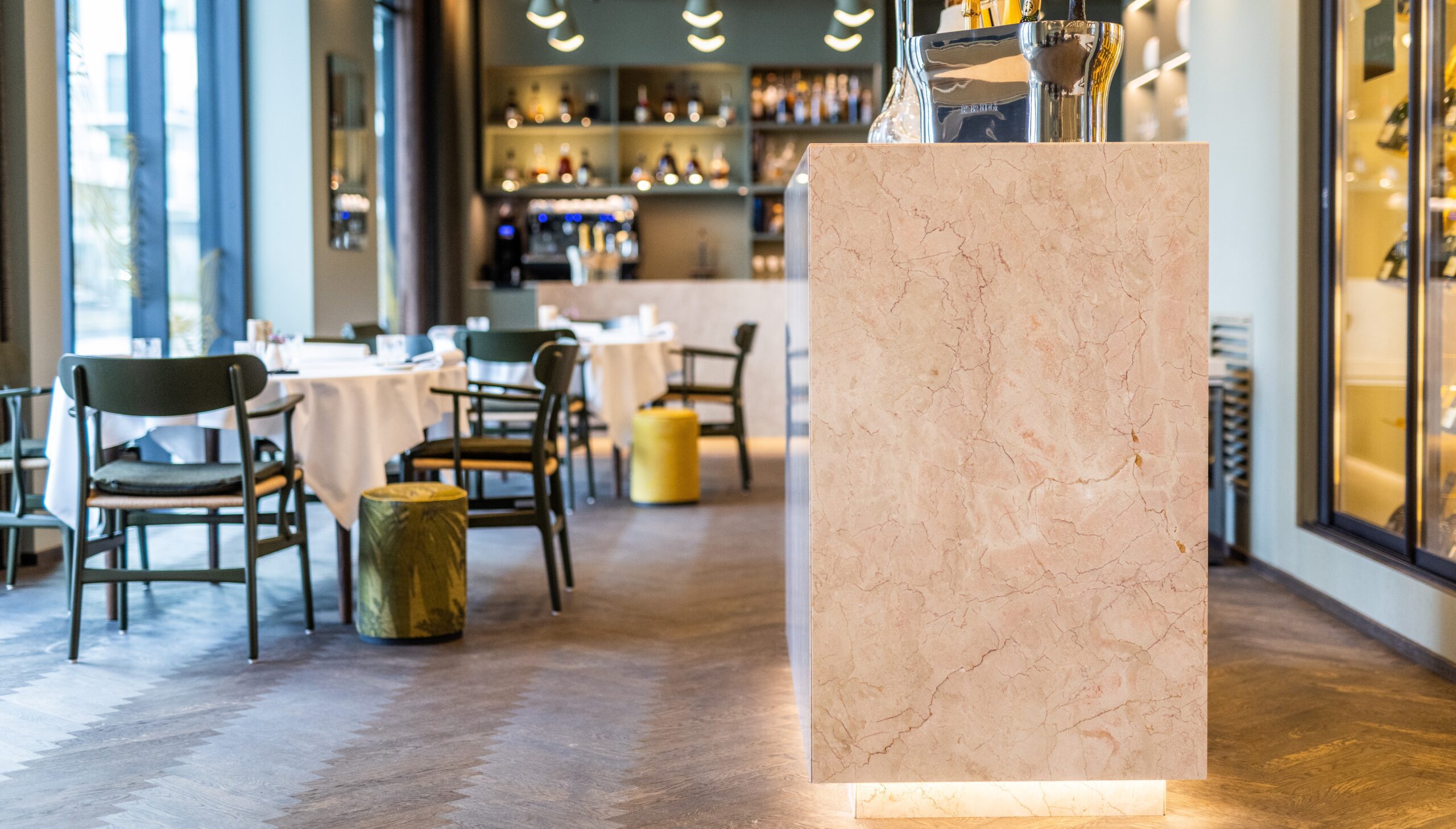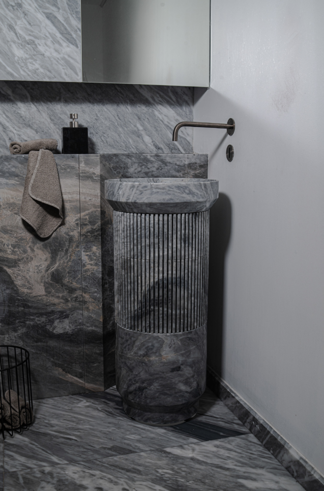 I dag bruges betegnelsen “marmor” ofte som en fællesbetegnelse for både den geologiske defineret marmor og visse typer kalksten. Fælles for begge materialer er, at de fremstår bløde i både udtryk og fornemmelse. Geologisk set er marmor en metamorf sten, der oprindeligt er kalksten, men som under højt tryk og temperatur har omkrystalliseret. Dette giver marmoren et karakteristisk trådet, åre-lignende mønster, som skaber et elegant visuelt udtryk. Marmor findes i et væld af farver og med sine karakteristiske årer og skift i strukturen gør hver plade unik, hvilket giver et individuelt præg til enhver overflade.