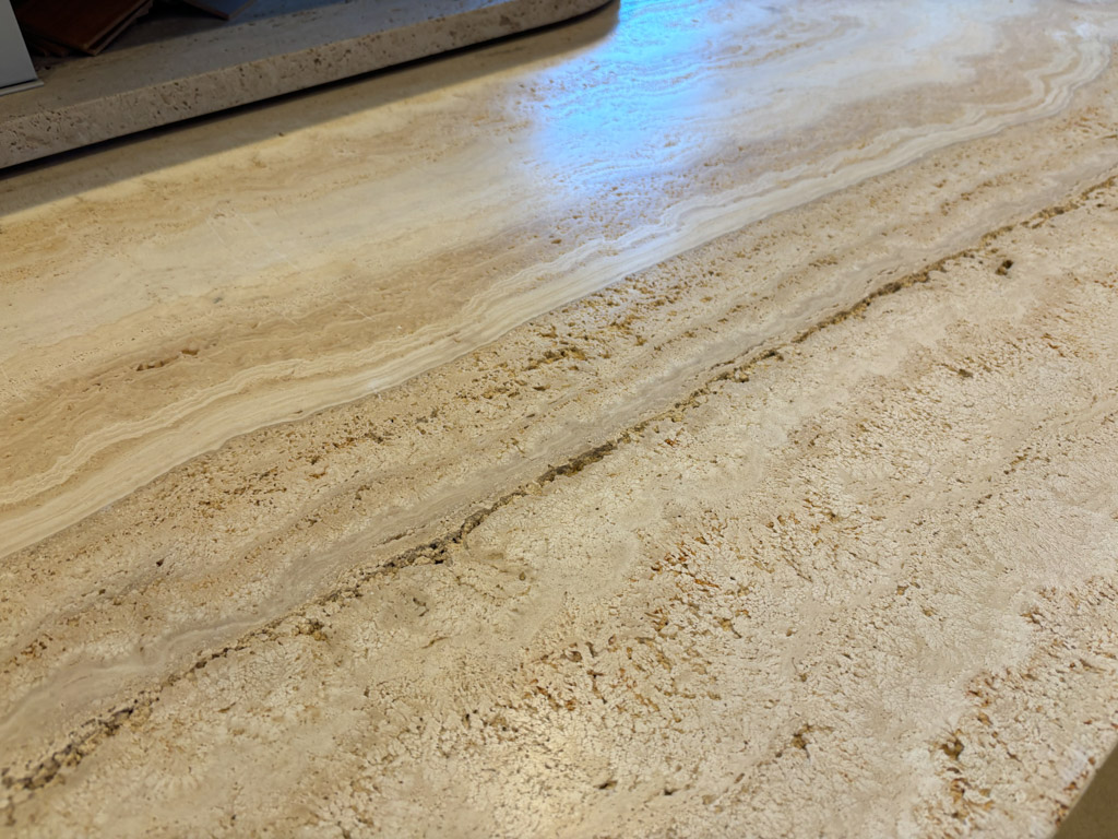 Fordi travertinen er uspartlet kan bænken også anvendes i overdækkede arealer, da travertin uden spartling tåler frost.