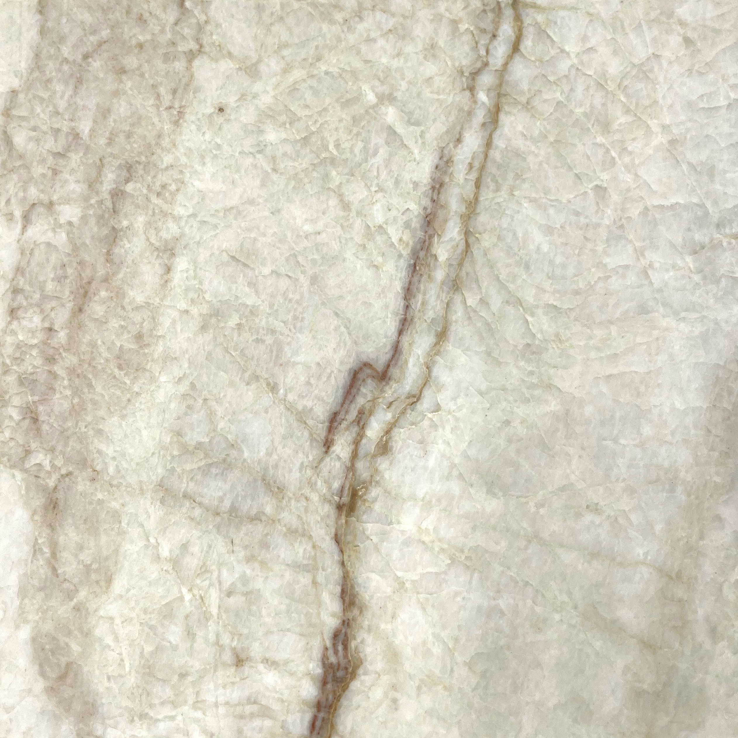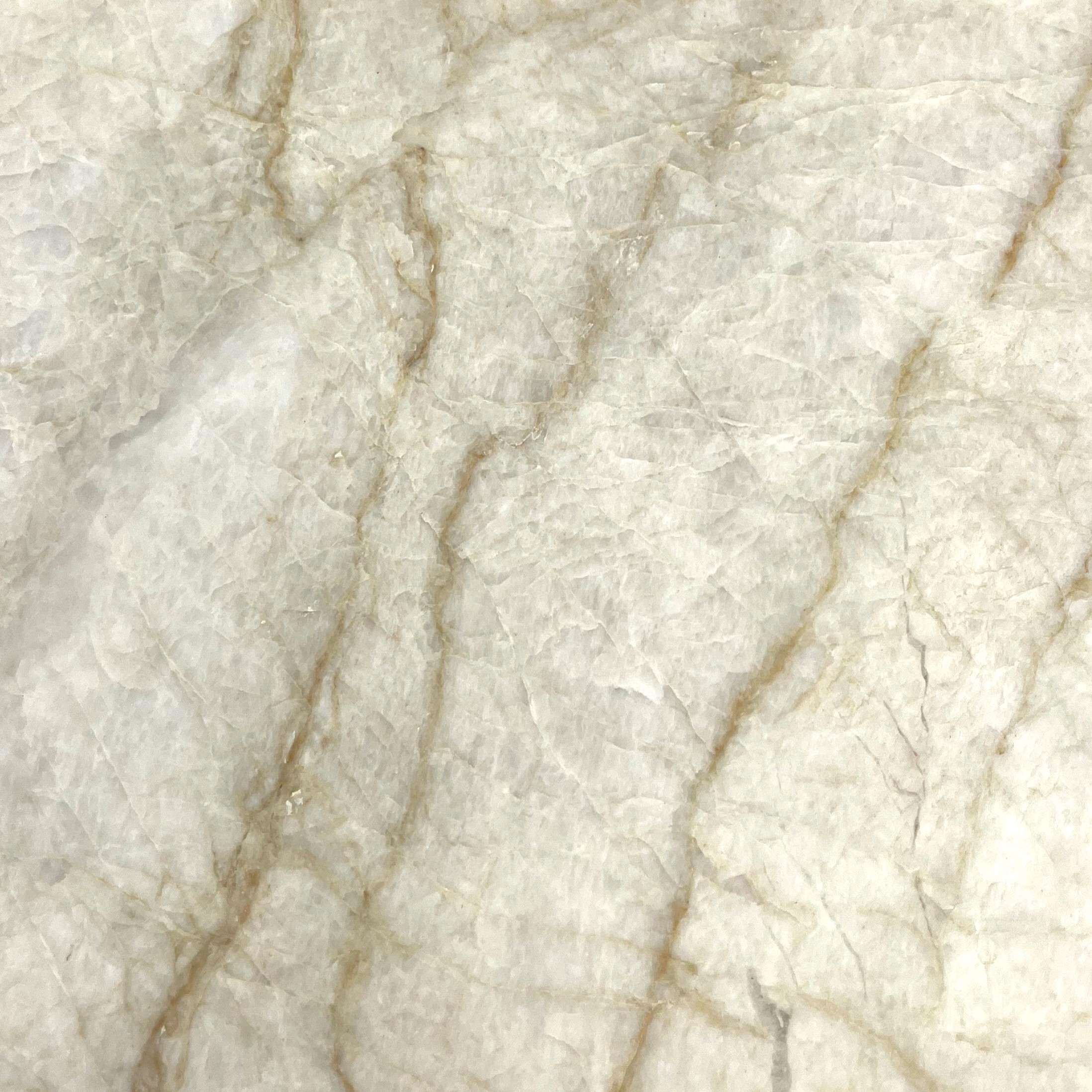 Taj Mahal er en natursten med en lys beige baggrund, subtile guld- og taupefarver samt fine, uregelmæssige åretegninger i grå og brune nuancer.